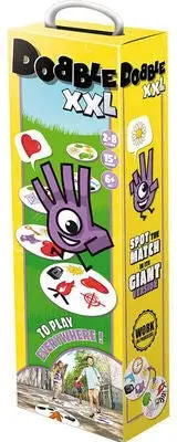 Dobble XXL, et morsomt kortspill i jumbo-versjon! Spill det morsomme kortspillet på plenen eller i parken. Hopp fra kort til kort ved å finne de matchende motivene.Anbefalt alder: Fra 8 år.