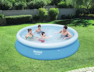 Bestway Fast Set er et supert badebasseng til late sommerdager i solen! Bassenget er enkelt og montere, bare plasser det på et jevnt underlag, blås opp den øverste ringen, fyll bassenget med vann og det reiser seg selv!Du tømmer bassenget ved å feste hageslangen på ventilen med adapteren som inngår. Med på kjøpet av Bestway Fast Set-bassenget får du reparasjonslapper! La dette bassenget bli en redning under solfylte dager!Kompatibel med Bestway Flowclear filterpumpe 1249 L/h (inngår ikke). OBS! Badebassenget skal monteres på flatt underlag.