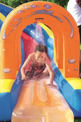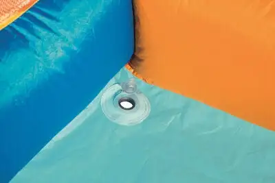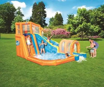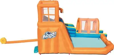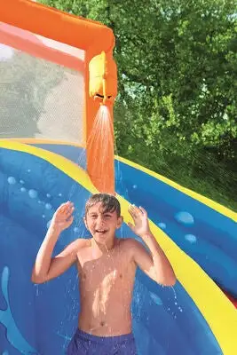 Forvandle hagen til et badeland for barnet ditt med denne oppblåsbare vannparken fra Bestway! Utstyrt med både klatrevegg, en dusjfontene, sklie og et stort bassengområde, kan vannparken skilte med mange morsomme aktiviteter, som garantert gir barnet ditt timevis av moro. Vannparken er laget i et holdbart, forhåndstestet materiale og blåses opp på mindre enn to minutter, takket være den medfølgende luftpumpen. Vannsklien har en stabil konstruksjon med sikkerhetsnett rundt øverste punkt, slik at barnet kan skli og leke trygt. Vannparken er i tillegg utstyrt med nettinglomme på siden, for praktisk oppbevaring av barnas sko.Et ordentlig reparasjonskitt, vannslange, bakkefester og oppbevaringsveske inngår. Anbefalt alder: fra 5 år. Vannparken er kun beregnet for utendørsbruk.