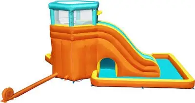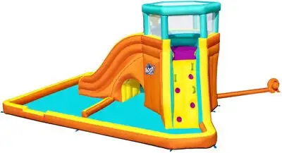 Forvandle hagen til et badeland for barnet ditt i sommer, med vannparken Tidal Tower Mega! Denne oppblåsbare vannparken er laget av et slitesterkt, forhåndstestet materiale. Den blåses opp på under to minutter, takket være den medfølgende luftpumpen. Det er også satt opp et nett rundt det høyeste punktet, for økt sikkerhet.Vannparken har en innebygd vannspruter, som spruter ut vann for å holde sklien glatt. Parken har et ekstra stort bassengområde samt en stor tunnel å krype gjennom. En vannspreder skaper en vegg av vann, som man kan hoppe og løpe gjennom.Et ordentlig reparasjonssett, en vannslange, bakkefester og oppbevaringsveske er inkludert.Anbefalt alder: fra 5 år.Vannparken er kun ment for utendørs bruk.