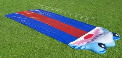 Vannsklien H2OGO! fra Bestway, med tre baner der du og vennene dine kan leke og konkurrere. Fyll vannsklien med vann, for å gi bedre stabilitet. Den er utstyrt med innebygde sprinklere, som holder banene våte og glatte.På enden av sklien er det et basseng, som lar deg lande med et plask. Vannsklien kan kobles til en hageslange, via en adapter.Et reparasjonssett er inkludert, i tilfelle det skulle oppstå en punktering.Anbefalt alder: fra 3 år.