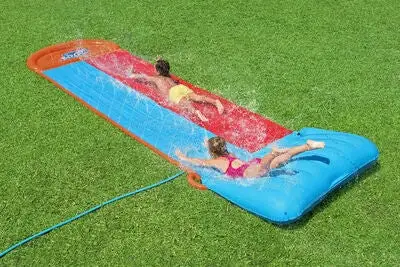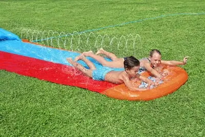 Morsom H2OGO! vannsklie fra Bestway med to kjørefelter slik at barna kan konkurrere med vennene sine. Den har en innebygd sprinkler for ekstra moro. Perfekt for lekne sommerdager. – CE-merket. – Inneholder: 1 vannsklie, 1 reparasjonskitt. – Anbefalt alder: fra 3 år. – 98,97 % PVC, 0,34 % polystyren, 0,69 % ABS-plast.