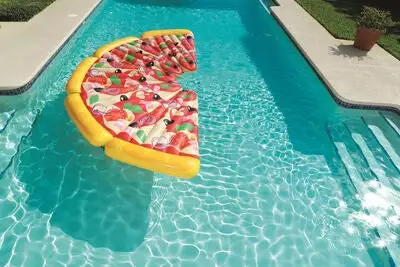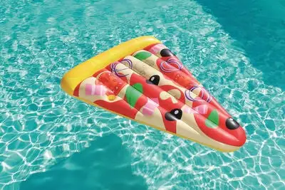 Bli den kuleste på stranda, med denne morsomme flyteleken fra Bestway! Flyteleken forestiller en appetittvekkende pizzabit, som du kan flyte rundt på mens du nyter solen. Den oppblåsbare flytemadrassen er laget i solid vinyl, og har to luftkammer og smarte sikkerhetsventiler. Badeleken leveres med et praktisk reparasjonssett, slik at du enkelt kan lappe små rifter eller hull. Den har en praktisk, innebygget koppholder, slik at du kan kjøle deg ned med en kald drikke mens du flyter rundt på vannet, eller ligger på stranda og soler. Flytemadrassen har i tillegg to festeringer på undersiden av hver langside, slik at du kan feste flere flytemadrasser sammen, og lage en kjempestor, flytende pizza!