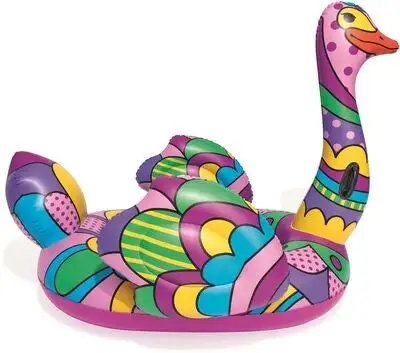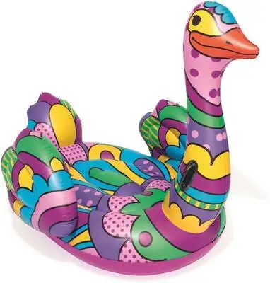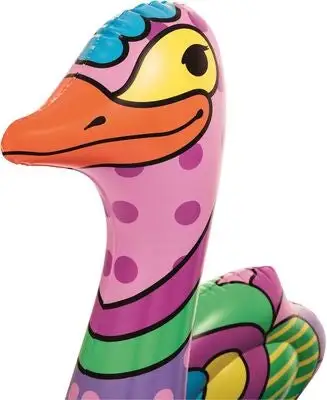 En morsom, oppblåsbar badeleke fra Bestway – perfekt til sommerens herlige strandeventyr! Flyteleken er formet som en morsom struts, og er laget i et slitesterkt og forhåndstestet materiale. Strutsen er utstyrt med sikkerhetsventiler, tre luftkammer og robuste håndtak.En robust reparasjonslapp medfølger. Anbefalt alder: fra 14 år.