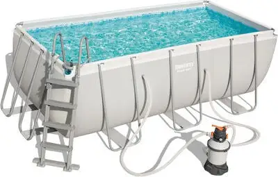 Møt sommerens varme dager på best mulig måte, med denne bassengpakken fra Bestway! Settet består av et rektangulært badebasseng med rensende sandfilterpumpe og en lettmontert bassengstige. Takket være den rektangulære formen, gir badebassenget gode muligheter for både lek og svømming. Bassenget har et fint mosaikkmønster som dekker sidene og bunnen. Bassenget har en stabil konstruksjon, med metallrammer i rustfritt stål og kraftige, tresidige vegger i PVC og polyester. Et innbydende mosaikkmønster dekker sider og bunnen. Bassenget har i tillegg en innebygget avløpskran for flytkontroll, som gjør det enkelt å drenere med en vanlig hageslange og medfølgende adapter.Badevannet holdes rent ved hjelp av den forhåndsinstallerte sandfilterpumpen og den medfølgende klordispenseren. Sandfilterpumpen renser bassenget ved hjelp av kiselsand, som sørger for at bøss og urenheter holdes borte. Med klordispenseren tilføres vannet et jevnt nivå av klor, som videre sørger for å opprettholde den kjemiske balansen i badevannet. Sikkerhetsstigen gjør det enkelt å ta seg i og ut av bassenget på en trygg og sikker måte. Takket være stigens smarte konstruksjon, kan du i tillegg kontrollere når bassenget er tilgjengelig og ikke. OBS! Bassenget skal monteres på flatt underlag.