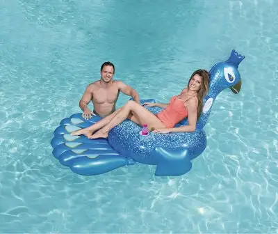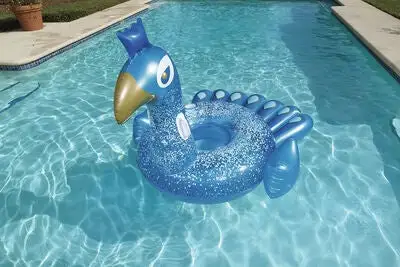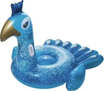 Et morsomt, oppblåsbart badedyr i form av en påfugl, fra Bestway. Påfuglen har en stabil konstruksjon i kraftig, forhåndstestet vinyl, med praktiske håndtak på hver side av halsen. På denne påfuglen i nydelig design, kan barnet lene seg trygt tilbake og nyte solen på vannet!Anbefalt alder: fra 6 år.