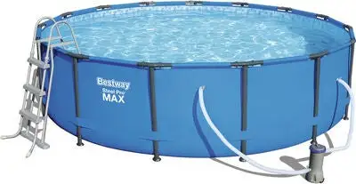 Bestways Steel Pro er det perfekte bassenget for late sommerdager i solen! Bassenget leveres med filterpumpen Flowclear™, en bassengstige, et bassengovertrekk samt reparasjonslapper. Steel Pro-bassenget er enkelt å montere og filterpumpen sørger for at vannet holdes rent. Stålrammen er rustri og det forsterkede tauet som løper over bassengbunnen sørger for at beina står stødig. For å tømme bassenget fester du en hageslange på ventilen med adapteren som inngår. La dette bassenget bli en redning når solen steker! Ekstra filter (Bestway Cartridge II) kan kjøpes separat.OBS! Bassenget skal monteres på jevnt underlag.