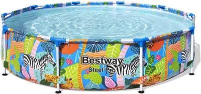 Bestways Steel Pro er et perfekt overbakkebasseng til late dager i sommersolen! Bassenget monteres enkelt og smidig. Stålrammen er rustbestandig og det forsterkede tauet, som løper rett over bassengbunnen, sørger for at beina står stødig. Du tømmer enkelt bassenget ved å feste en hageslange til ventilen. Praktiske reparasjonslapper medfølger. La dette bassenget bli en redning i solsteika!Kompatibel med Bestways Flowclear-filterpumper (inngår ikke).OBS! Bassenget skal monteres på en flat, ruskfri overflate.