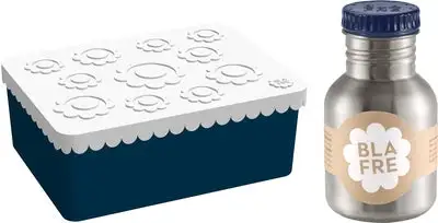 En praktisk og fin matboks og en drikkeflaske fra Blafre, perfekt å ha med seg til skolen. Den stilige matboksen har tre rom med god plass til forskjellig mat og snacks, og den er lett å åpne for barnet. Boksen tåler oppvaskmaskin, men bør ikke varmes i mikrobølgeovn. Flasken som inngår er av rustfritt stål og har en sikkert skrukork. Fri for BPA og ftalater.