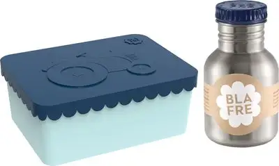 En praktisk matboks med fint design og en flaske fra Blafre, til å ha med på skolen eller utflukten! Den fine matboksen har et stort rom med plass til forskjellige godsaker, og er enkel for barnet ditt å gripe og åpne. Boksen tåler oppvaskmaskin, men bør ikke varmes i mikrobølgeovn. Du får i tillegg med en praktisk flaske i rustfritt stål og sikker skrukork. Fri fra BPA og ftalater.