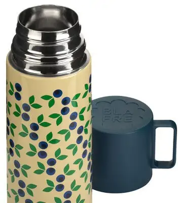 En praktisk og sikker termos med fint design fra Blafre. Termosen er av rustfritt, gjenvinningsbart stål og korken og koppen er av plast, helt fri fra BPA og ftalater. Takket være de doble veggene og den doble bunnen holder termosen drikken din varm i seks timer. Vil du heller fylle termosen med saft, eller andre kalde drikker, fungerer det fint. Denne termosen passer perfekt til alle morsomme utflukter! – Holder varmen i seks timer – Bør vaskes for hånd – Tåler ikke mikrobølgeovn eller oppvaskmaskin