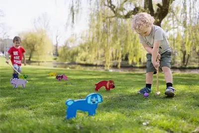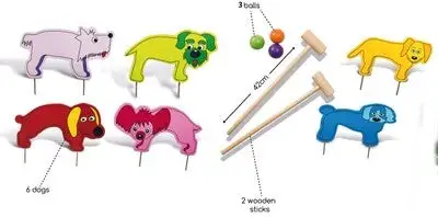 Morsomt spill fra BS Toys med søte, fargerike hundemotiv. Det har deler i bjørk og MDF og køller i gummi og tremateriale. Perfekt til sommerens utendørsleker. – CE-merket– Ikke egnet for barn under 3 år– Anbefalt alder: Fra 3 til 12 år