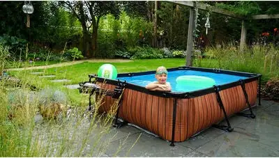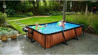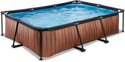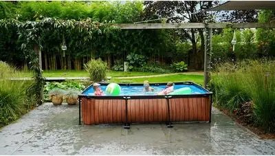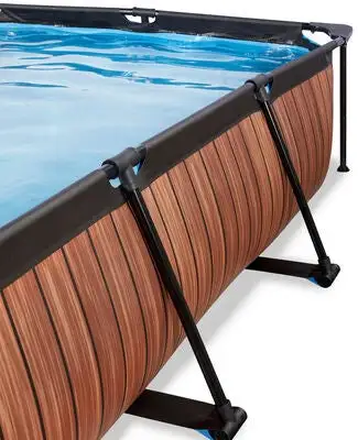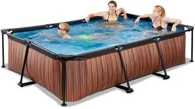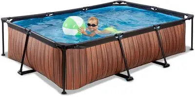 Rektangulært, brunt svømmebasseng fra EXIT med en galvanisert, pudderlakkert stålramme. Det har tykke vegger i PVC for ekstra slitestyrke, og en effektiv filterpumpe som rengjør og sirkulerer vannet, slik at det holder seg friskt og klart for bad og lek. – Lav rammehøyde, som er enklere for små barn å komme seg over – 300x200x65 cm – CE-merket – Inkluderer: stålramme, filterpumpe. – Skal brukes under oppsyn av en voksen – Anbefalt alder: fra 6 til 12 år