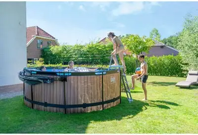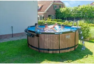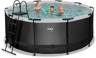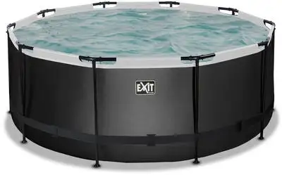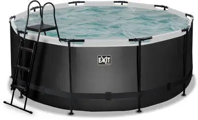 Rundt, svart svømmebasseng fra EXIT med en galvanisert, pudderlakkert stålramme. Det har tykke vegger i PVC for ekstra slitestyrke, og en effektiv filterpumpe som rengjør og sirkulerer vannet, slik at det holder seg friskt og klart for bad og lek. – 360×122 cm – CE-merket – Inkluderer: stålramme, filterpumpe, bassengstige. – Skal brukes under oppsyn av en voksen – Anbefalt alder: fra 6 til 12 år