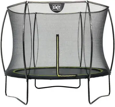 Silhouette-trampoline fra EXITn er en rund trampoline på ben, som leveres med sikkerhetsnett. Trampolinen er utstyrt med bøyde støtter, så nettet strekker seg mot hoppflaten. Den beskyttende myke kanten dekker hullene som oppstår mellom de galvaniserte fjærene, og den er utstyrt med en spesiell fotbeskyttelse, som forhindrer at foten blir fanget mellom hullene. Stativ og ramme er galvanisert og pulverlakkert for å forhindre rust. En super trampoline å ha ute i hagen!