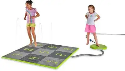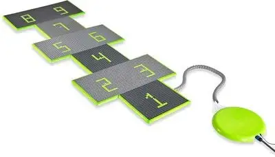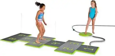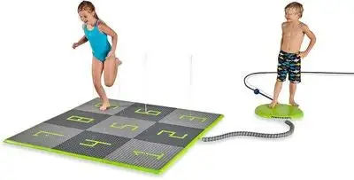 En morsom vannspreder fra EXIT. Med disse vannspillplatene, kan dere ha mange timer med morsom lek ute i hagen. Setet består av 9 brikker. Dette morsomme leketøyet kan kontrolleres med kontrollboksen som inngår, samt en praktisk app. Det er bare å koble hageslangen til panelet, dytte til den med foten, så setter vannspillet i gang. Jag vannstrålene, prøv å unngå dem, eller hvorfor ikke fange med? Et perfekt leketøy på varme sommerdager!