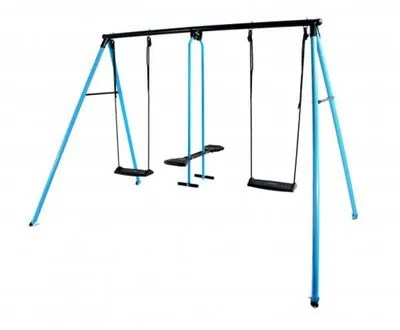 Hörby Bruk Huskestativ Cancan Classic er utformet med stabilt stålrørsstativ samt sveisede benfester. To enkelthusker med tau, samt en dobbelthuske inngår. Kraftige seter med avrundede kanter fremstilt av plast som tåler UV-stråling. Sikre klembeskyttelser. Husken er utstyrt med fotplater for alternativ forankring. Anbefalt alder: Fra 3 år. Maks belastningsvekt per sitteplass: 50 kg.Mål: 185 cm x 215 cm. Plassbehov: 275 x 185 cm.Vekt: 22 kg.Farge: TurkisSikkerhet:- Skal brukes med forsiktighet for å forhindre skader gjennom fall, klem eller kollisjon.- Brukes under tilsyn av voksen.