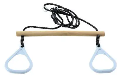 En praktisk og morsom trapes i tre, fra Hörby Bruk. Den har plastringer i UV-bestandig materiale, og sterke opphengsringer. Taulengden er justerbar, med en maksimal lengde på 1,5 meter. Godkjent etter Lekestandard EN-71 for lek i privat hage.Anbefalt alder: fra 3 år