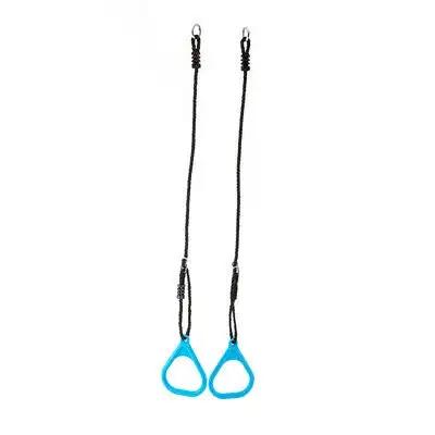 Trapesringer fra Hörby Bruk. Heng opp trapesringene i huskestativet eller hagen, med hjelp av de kraftige metallringene. Trapesringene er CE-merket, og godkjent i henhold til Lekestandard EN-71 for lek i privat hage. Plastringene er laget av et UV-bestandig materiale.- Justerbar taulengde, maks 110 cm, minimum 65 cm.