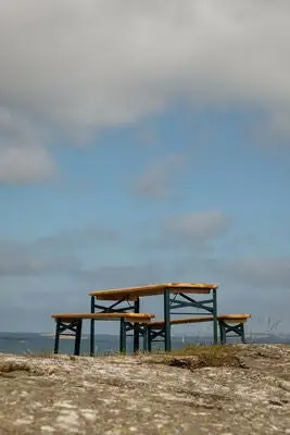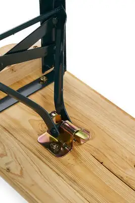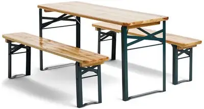 Værbestandig, brun Bord & Benk utemøbel fra JLY med et bord. Den har to benker. – Mål: H 31 x B 20 x L 110 cm – Mål: H 51 x B 40 x L 110 cm – Maksimal vekt: 100.0 kg – Anbefalt alder: fra 3 til 12 år – 70 % tremateriale, 30 % metall