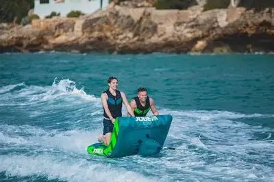 Kick Flip er en morsom funtube fra JOBE. Denne flytende tuben har plass til to personer. Tuben har to festepunkter for tauing, slik at man enten kan sitte eller stå på kne på tuben. Når man vil ta det litt rolig, kan man bruke tuben som en behagelig sofa å slappe av i.- 840D Nylon- Boston-ventil- To personer- To trekkretninger