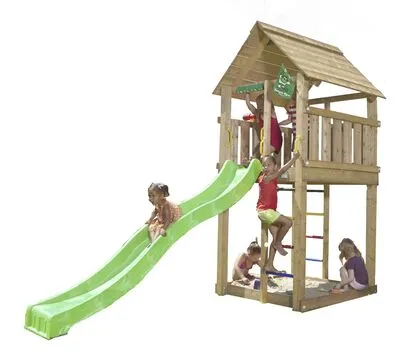 Jungle Gyms Cabin har alt barna vil ha: sandkasse, en over to meter lang sklie, og en stige som leder til lekestativets svimlende (for de små), 160 cm! Det er et kompakt lekestativ som passer like bra til de små hagene som de store – slik at så mange små som mulig skal kunne leke.Lekestativet kan ekspanderes med Jungle Gyms huske- og klatremoduler, som kan kjøpes separat.Lekestativet består av trykkimpregnert tre og er testet for kvalitet og sikkerhet av EN: 71-1, 2, 3, 8 og 9.Lekestativet leveres som et komplett monteringssett.Anbefalt alder: 4 år +.Maksvekt: 250 kg.Mål:Område exklusivt sikkerhetsområde: B350 x D140 x H305 cm.Område inklusivt sikkerhetsområde: B750 x D540 cm.Stolper: 68 x 68 mm.Konstruksjonsvirke: 34 x 59 mm.Planker: 16 x 95 mm.