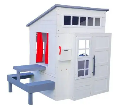 Lekestuen Modern Outdoor fra KidKraft har en hvit grunnmaling, slik at du selv kan male stuen i de fargene du ønsker. Lekestuen er utstyrt med flere spennende funksjoner – blant annet et innebygget kjøkken, postkasse, en svart tavle, bord med benker og en serveringsluke.Modern Outdoor er laget i forsterkede, ferdigmonterte trepaneler, med kort monteringstid og bedre motstandskraft mot vær og vind.Leveres med 5 års garanti på trematerialet.Anbefalt alder: Fra 3 til 10 år.