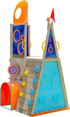 Nerf Scout Defense Post lekestativ fra KidKraft i tremateriale med flere, spennende elementer. Det har et tårn med en 360° utsikt på toppen og en smart tunnel under med hemmelige rom. Lekestativet har klatrevegger på begge sider og en praktisk stige med tau. Perfekt for fartsfylte eventyr. – CE-merket– Anbefalt alder: fra 8 år– 60 % tremateriale, 40 % plast