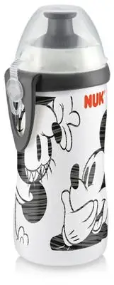 NUK Junior Cup Disney har en myk og sølefri sportstut. Flasken er ultralett og robust, tilvirket av PP-materiale (fritt for bisfenol A). Ideelt for barn på tur. Anbefalt alder: 36 mnd +. Farge: svart/hvit.