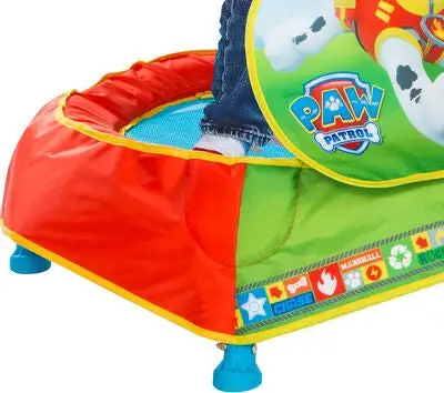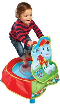 En morsom trampoline til barnerommet, med motiver fra Potepatruljen. Denne fargerike trampolinen passer perfekt for de litt yngre hopperne. Trampolinen er enkel å montere, den er designet for å være både trygg og morsom. Den er lav, slik at barnet ditt lett kan komme seg opp og ned på egen hånd. Gummiføttene sørger for at trampolinen står stødig på gulvet, med hjelp av håndtaket kan barnet ditt enkelt holde balansen. Et morsomt leketøy som lar barnet øve på balanse og koordinering!Anbefalt alder: fra 12 måneder.