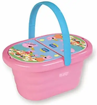 En nydelig piknik kurv med motiver fra Peppa Gris. Denne praktiske kurven inneholder alt du trenger for en vellykket piknik. Kurven har et lokk med et motiv av Peppa Gris og et praktisk bærehåndtak på toppen. Den kommer med krus, glass, tallerkener, skjeer, gafler og kniver for tre personer. Det følger også med en melkekanne og en sukkerskål med lokk.Anbefalt alder: Fra 3 år.