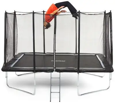 Denne trampolinen fra Pinepeak kommer til å bli utelekens høydepunkt! Trampolinen er enkel å bruke: dra opp glidelåsen for å åpne sikkerhetsnettet, og ikke glem å stenge igjen etter deg for å forsikre maksimal trygghet når du hopper. Med trampolinens rektangulære form er den enklere å gjøre plass til i hagen. Anbefalt alder: fra 6 år. OBS! Kun en person kan være på trampolinen samtidig.