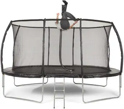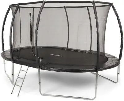 Denne ovale trampolinen fra Pinepeak kommer til å bli utelekens høydepunkt! Trampolinen er laget av robust stål som forhindrer korrosjon, og gir deg hoppeglede i mange år fremover! Trampolinen er enkel bruke, bare å klatre opp og dra ned glidelåsen for å åpne opp sikkerhetsnettet. Husk å stenge etter deg så du får maksimal sikkerhet når du hopper. Matten er sklisikker, UV-resistent og har tykke vatterte kanter. – Enkel montering – verktøy følger med. – Monteres på gressmatte eller sikkerhetsmatte Anbefalt alder: fra 6 år.