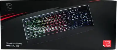 K20 tastatur fra Piranha, spesielt utviklet for å gi deg den heftigste spilleopplevelsen. Det svarte tastaturet er opplyst med bakgrunnsbelysning i kule regnbuefarger, som gir den riktige stemningen. Tastaturet er enkelt å installere og utstyrt med Plug & Play USB-tilkobling. Fungerer like bra for nybegynnere, som for den mer erfarne brukeren.Kompatibel med PC.