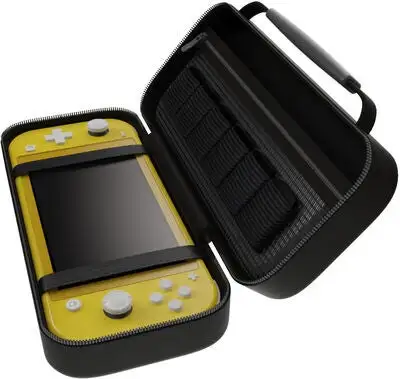 Premium beskyttelsesetui for Nintendo Switch. Beskytt din Nintendo Switch med denne elegante, lille beskyttelsesvesken. Vesken har plass til både spill og andre tilbehør. Det støtsikre skallet gjør at du slipper å bekymre deg for at din Switch skal bli ødelagt, om du skulle miste den i bakken. Etuiet har en praktisk glidelåsåpning.