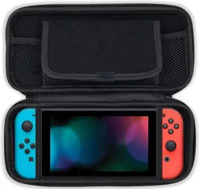 Bærevesken Combo Case And Tempered Glass til Nintendo Switch. Vesken har flere praktiske funksjoner, du kan blant annet bruke den som stativ til din Nintendo Switch ved hjelp av flip-up-funksjonen. Inni vesken er det god plass til 8 spill, kabler og andre tilbehør.Vesken leveres sammen med et herdet beskyttelsesglass til Nintendo Switch, som beskytter skjermen mot riper, støt og lignende. Rengjøringsklut til skjermen inngår.