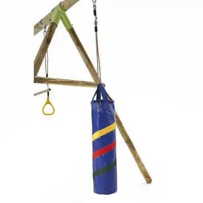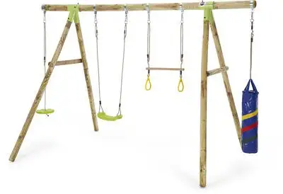 Capuchin huskestativ i tre fra Plum med mange, morsomme aktiviteter. Stativet har en trapes med ringer, en boksesekk og husker. Perfekt for utendørs eventyr. – CE-merket. – Maksimal vekt: 50 kg. – Anbefalt alder: fra 3 år. – 70 % tre, 20 % plast, 10 % metall.