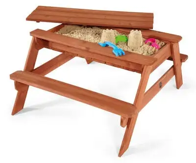 En super sandkasse og et piknikbord i ett, fra Plum®. Bordet kan enkelt gjøres om til sandkasse, det er bare å løfte av bordskiven. Bordet har to benker, og er laget avholdbart, FSC®-sertifisert tre. -FSC®-sertifiserte trær hogges og håndteres på en ansvarsfull og miljøbevisst måte. Produktet leveres som et komplett monteringssett. Sand inngår ikke. Anbefalt alder: 2 år +.