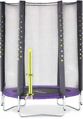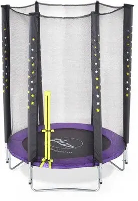 Lilla, svart trampoline fra Plum med et sikkerhetsnett. – Maksimal vekt: 40.0 kg– Undersøk trampolinen regelmessig for å sikre at den er i god stand og riktig montert. Bytt ut ødelagte nett og rammebeskyttelse umiddelbart– Anbefalt alder: Fra 3 år