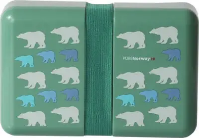 Pure Norway Go Matboks Med Gummibånd Isbjørn, Grønn