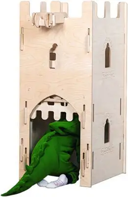Et stort riddertårn i bjørketre, fra Pursuit Of Adventure. Tårnet har en gitterport og en indre tårngård, hvor du kan gjemme deg fra angripende krigshærer. Leketårnet er bygget opp av flere veggelementer i kryssfiner, som du selv enkelt kan bygge sammen. Slottet fungerer som en koselig hytte på barnerommet, som inviterer til fantasifulle ridderleker.Porten kan lukkes med et tidstypisk fallgitter, som på ekte middelalderborger.Anbefalt alder: fra 2 år.