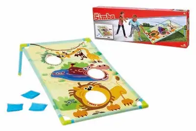 Morsomt utendørsspill fra Simba Toys med et dyremotiv. Det har et brett med tre hull og erteposer som du kan kaste gjennom dem. – CE-merket– Anbefalt alder: fra 3 år