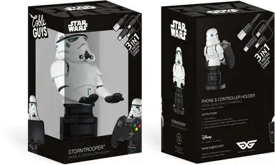 En kul dingsholder med Star Wars-tema, perfekt til å holde smartphonen eller spillkontrollen under lading. Figuren holder armene ut og fungerer som støtte til dine digitale artikler. Den også brukes om du vil se film eller bilder på smartphonen mens du har hendene frie.Leveres med en 2 meter lang 3-i-1-ladekabel, som du kan bruke til å lade opp enhetene dine. Anbefalt alder: 6 år +.
