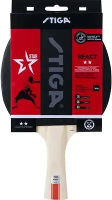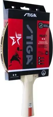 Bordtennisracketen React er en 2-stjernet bordtennisracket fra Stiga. Racketen er laget av 5-lags kryssfiner og STAR 2-gummi, med 1,9 mm svamp. Den har et konkavt skaft, som gir et behagelig grep under hele spillet.