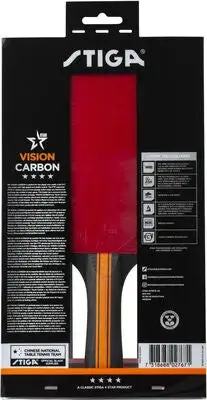 Bordtennisracketen Vision Carbon fra Stiga er en 3-stjernet bordtennisracket med mye kontroll. Racketen er laget i 5+2 plystomme med 2,0 mm svamp og STAR 4-Gummi. Kullfiberet gjør racketen stabil og gir en større treffoverflate på hele bladet slik at du får maksimal kraft uten å miste kontroll eller følelse.