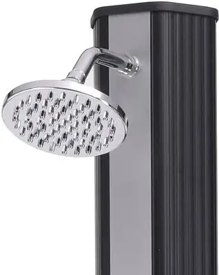 Praktisk, grå Solar Milano XL 35L Dusj fra Swim & Fun i rustfritt stål med medfølgende monteringsbolter i rustfritt stål. Dusjen er enkel å montere, og har en separat kran over føttene. Perfekt for solrike dager. – Mål: H 213 cm