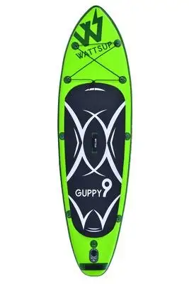 Stand up paddle Guppy 9 er en oppblåsbar kajakk som er utmerket å stå på. Den er bygget i en allroundform som gjør den enkel å manøvrere. Den er ekstra stabil for nybegynnere og lettvektere opp til 80 kg. Tykkelsen på 12 cm tilbyr en stabil, oppblåsbar SUP, og den har en opphøyet kick-matte på baksiden som gir deg mer kraft og bedre manøvrering. D-ringene gjør du enkelt kan montere et kajakksete. – Oppbevaring i fronten med hjelp av elastiske spennbånd. – Avtakbar sentralfinne for allsidig styring. Inngår:-1 paddelåre- LuftpumpeAnbefalt alder: Fra 10 år.