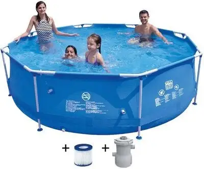 Et herlig basseng fra Wehncke. Dette stabile bassenget på rampe passer perfekt for solrike dager. Bassenget er enkelt å montere, med størrelsen på Ø300 cm kan hele familien bade sammen. Bassenget er enkelt å sette opp og leveres med en pumpe, en problemfri venn i hagen for varme sommerdager. Sommerens utendørsleker er reddet, med dette fantastiske avkjølende bassenget!Anbefalt alder: Fra 6 år.